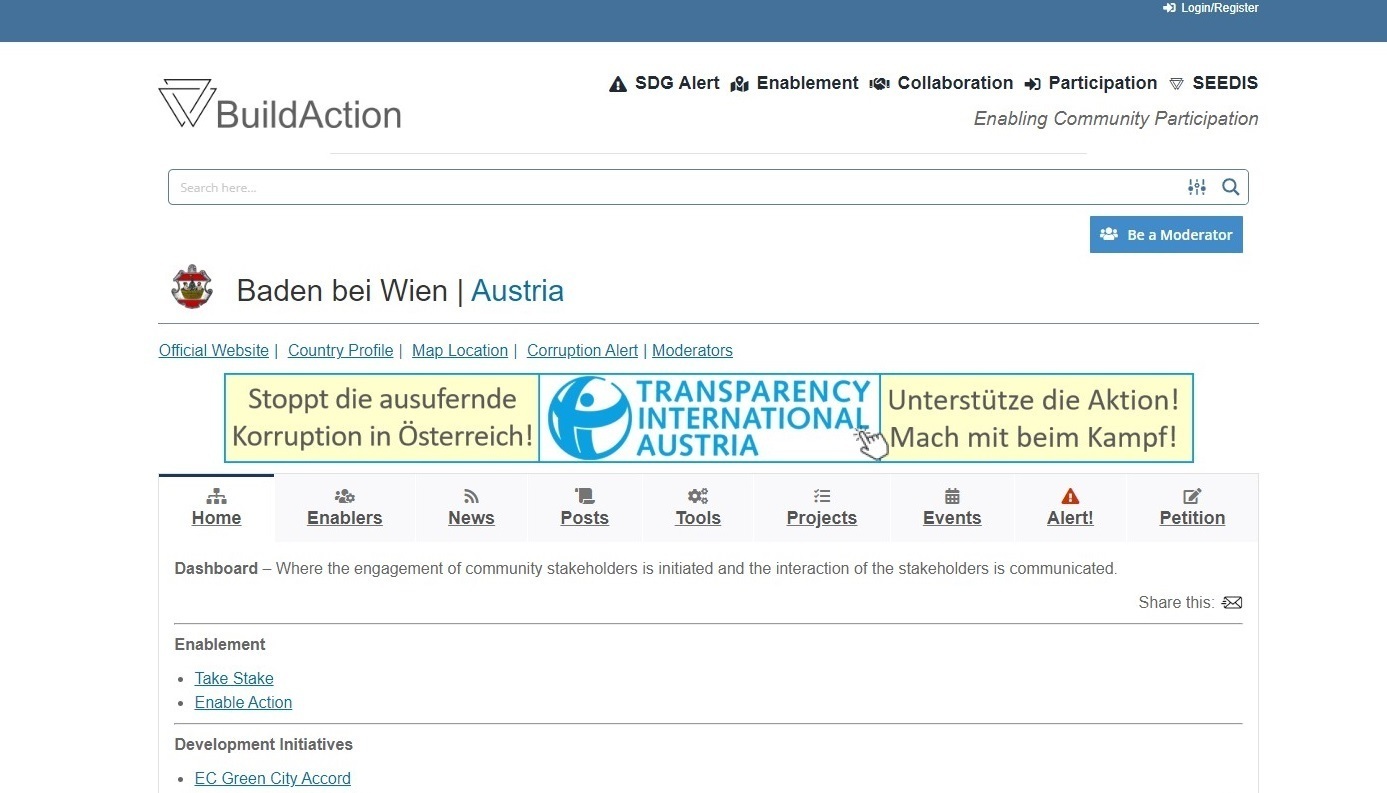 In collaboration and cooperation with the City of Baden, BuildAction is enabling stakeholders to meet their civic duty to actively participate in community affairs. While facilitating citizen participation, the BuildAction toolkit also helps the local authorities and governments to fulfill their role and public duty to citizens.