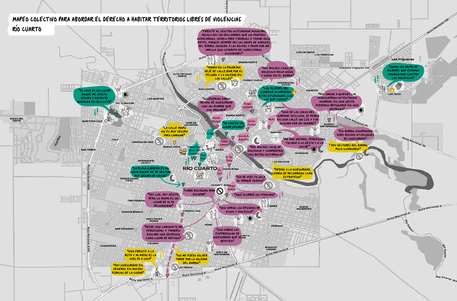 The goal of the practice is to expand the rights of women and diverse groups to the city, through multi-actor articulations, using innovative tools that are built in common, for the development of egalitarian territories. The practice aims to develop a process of knowledge-building using participatory tools that systematize quantitative, qualitative, reliable, accessible, and contextualized information to address the territorial inequalities that women and diverse groups experience in the city of Río Cuarto. The process followed these action lines: