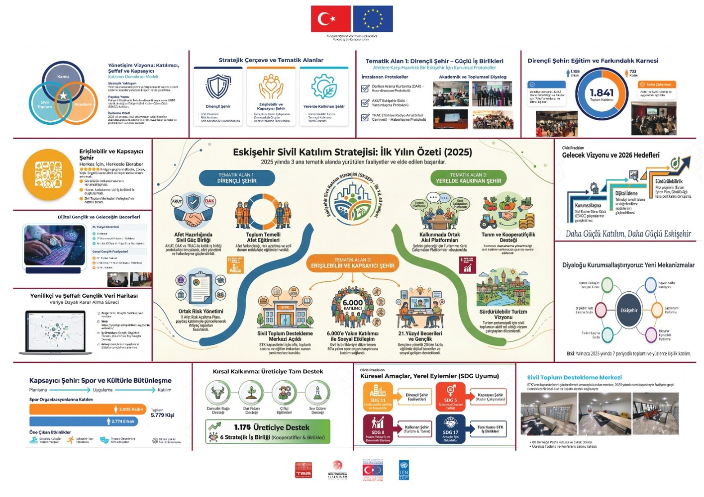 {"body":{"en":"<p>The Eskişehir Civil Participation Strategy and Action Plan (SKSEP) has contributed to strengthening civil participation in local decision-making processes and enabling citizens to take an active role in governance. The initiative was implemented under the coordination of the Eskişehir Metropolitan Municipality Strategy Development Department within the scope of the \"Strengthening Civic Participation for Improved Democratic Local Governance in Turkey\" Project, financed by the European Union and implemented with technical support from the United Nations Development Programme (UNDP). With Eskişehir selected as a pilot city, the initiative aimed to establish sustainable cooperation mechanisms between local government and civil society and to transform participation into an institutionalized structure. </p><p>The strategy and action plan were prepared through a comprehensive participatory process involving local governments, public institutions, universities, professional organizations, neighborhood headmen (muhtars), volunteers, and civil society organizations. Through meetings, workshops, and stakeholder analyses, the views of different groups were gathered, local needs were identified, and barriers to participation were assessed. </p><p>The Task Force, which played a central role in the process, guided both the preparation and implementation of the plan through regular meetings and working groups. The Action Plan consists of 3 objectives and 43 activities aimed at strengthening civil participation. Within the thematic area of Resilient City, community awareness and participation in disaster preparedness were promoted. Under the theme of Accessible and Inclusive City, initiatives were developed to increase the participation of vulnerable groups in decision-making processes. In the Locally Developing City theme, collaborations were established to shape local and rural development policies together with civil society. </p><p>One of the most tangible outcomes of this process is the Eskişehir Civil Society Support Center, established to strengthen civil society capacities and institutionalize a culture of participation. The working conditions and current status of civil society organizations were analyzed to identify various needs. In line with these findings, the Civil Society Center provides modern workspaces, meeting and event halls, and technical infrastructure, supporting civil society organizations in carrying out their activities more effectively and sustainably.</p><p>More information about: </p><p><a href=\"https://www.sivilkatilim.org.tr/\"><u>https://www.sivilkatilim.org.tr/</u></a> </p><p><a href=\"https://www.sivilkatilim.org.tr/\"><u>https://www.oidp.net/docs/repo/doc1924.pdf</u></a> </p><p><br></p>","es":"<p>La Estrategia y Plan de Acción de Participación Civil de Eskişehir (SKSEP) ha contribuido a fortalecer la participación ciudadana en los procesos de toma de decisiones a nivel local y a permitir que la ciudadanía desempeñe un papel activo en la gobernanza. La iniciativa fue implementada bajo la coordinación del Departamento de Desarrollo Estratégico del Municipio Metropolitano de Eskişehir, en el marco del proyecto “Fortalecimiento de la participación cívica para mejorar la gobernanza democrática local en Turquía”, financiado por la Unión Europea y ejecutado con el apoyo técnico del Programa de las Naciones Unidas para el Desarrollo (PNUD). Con Eskişehir seleccionada como ciudad piloto, la iniciativa tuvo como objetivo establecer mecanismos sostenibles de cooperación entre el gobierno local y la sociedad civil, así como transformar la participación en una estructura institucionalizada.</p><p>La estrategia y el plan de acción fueron elaborados mediante un amplio proceso participativo que involucró a gobiernos locales, instituciones públicas, universidades, organizaciones profesionales, jefes de barrio (muhtars), voluntarios y organizaciones de la sociedad civil. A través de reuniones, talleres y análisis de actores, se recogieron las opiniones de distintos grupos, se identificaron necesidades locales y se evaluaron las barreras a la participación.</p><p>El Grupo de Trabajo (Task Force), que desempeñó un papel central en el proceso, guió tanto la elaboración como la implementación del plan mediante reuniones periódicas y grupos de trabajo. El plan de acción incluye 3 objetivos y 43 actividades orientadas a fortalecer la participación cívica. En el eje temático de la Ciudad Resiliente, se promovieron la sensibilización comunitaria y la participación en la preparación ante desastres. En el tema de la Ciudad Accesible e Inclusiva, se desarrollaron iniciativas para aumentar la participación de los grupos vulnerables en los procesos de toma de decisiones. En el eje de la Ciudad en Desarrollo Local, se establecieron colaboraciones para construir conjuntamente políticas de desarrollo local y rural con la sociedad civil.</p><p>Uno de los resultados más tangibles de este proceso es la creación del Centro de Apoyo a la Sociedad Civil de Eskişehir, diseñado para fortalecer las capacidades de las organizaciones de la sociedad civil e institucionalizar una cultura de participación. Se analizaron las condiciones de funcionamiento y la situación actual de estas organizaciones para identificar diversas necesidades. En función de estos hallazgos, el Centro ofrece espacios de trabajo modernos, salas de reuniones y eventos, así como infraestructura técnica, apoyando a las organizaciones de la sociedad civil para desarrollar sus actividades de manera más eficaz y sostenible.</p><p>Más información:<br><a href=\"https://www.sivilkatilim.org.tr/\"><u>https://www.sivilkatilim.org.tr/<br>https://www.oidp.net/docs/repo/doc1924.pdf</u></a></p><p><br></p>","fr":"<p>La Stratégie et le Plan d’action pour la participation civique d’Eskişehir (SKSEP) ont contribué à renforcer la participation citoyenne dans les processus d