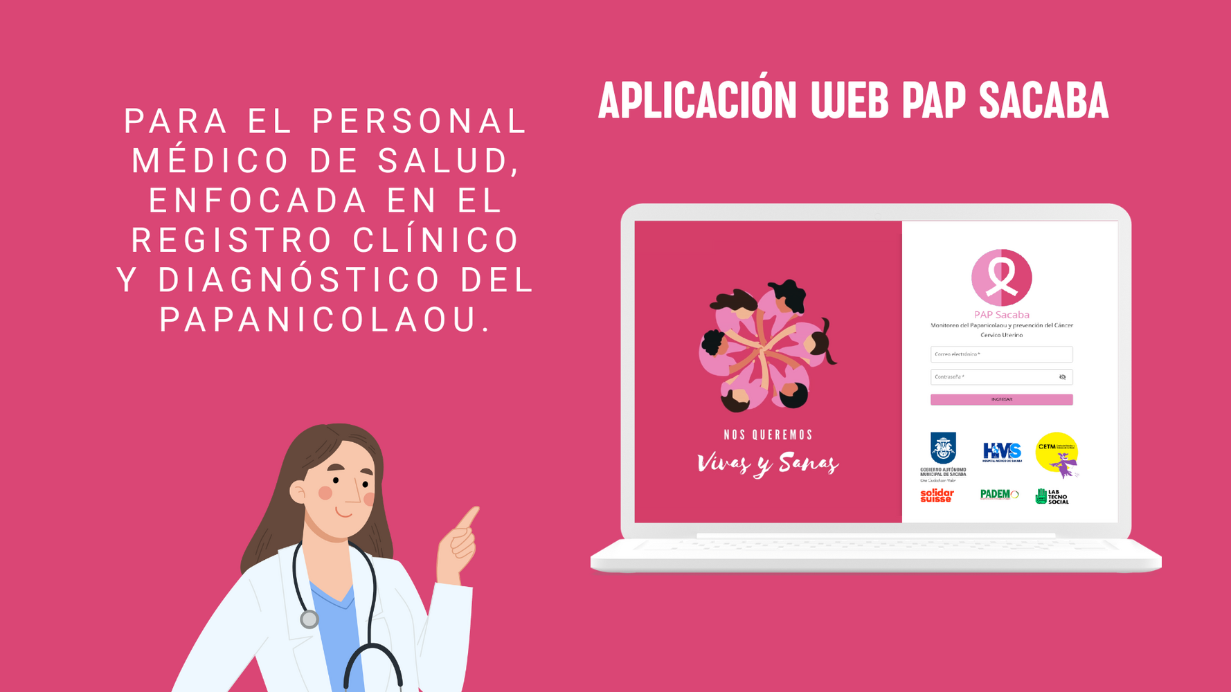 PAP Sacaba consisted of the design and implementation of a municipal digital system for monitoring Pap smears and preventing Cervical Cancer (CACU) in the municipality of Sacaba, Bolivia. The initiative emerged in response to the need to overcome scattered manual records and delays in delivering results—factors that contributed to low coverage and late diagnoses.