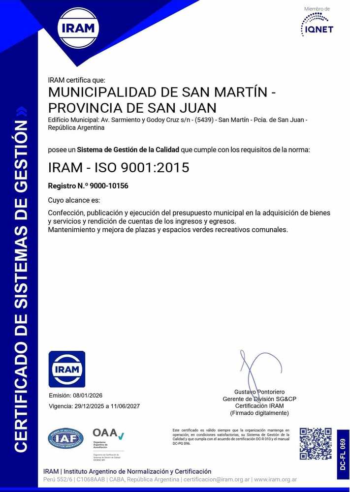 {"body":{"en":"<p>The practice “Quality Management and Continuous Improvement in the Municipal Administration of San Martín” consisted of implementing a management system based on the ISO 9001:2015 standard with the aim of strengthening the efficiency, transparency, and quality of municipal public services. The initiative began with the certification of processes in the Treasury and Finance area and was subsequently progressively expanded to other municipal departments. In 2025, certification was extended to the management of public squares and parks, and in 2026 new departments such as Social Development and Public Services were incorporated, consolidating a continuous improvement model within local administration.</p><p>The practice is based on the standardization of procedures, the definition of performance indicators, internal and external audits, and the active participation of municipal staff in training and management improvement processes. It also incorporates citizen feedback mechanisms such as satisfaction surveys, complaint and suggestion systems, and community participation spaces linked to territorial programs.</p><p>Among its results are the optimization of administrative processes, greater efficiency in the use of public resources, and strengthened trust between citizens and municipal management. In addition, the practice is aligned with local policies such as the San Martín Strategic Plan 2030, and its continuity has been guaranteed through a municipal ordinance, institutionalizing continuous improvement and a more transparent and participatory public administration.</p><p>More information:<br> <a href=\"https://www.oidp.net/docs/repo/doc1920.pdf\">munisanmartin.com.ar</a></p><p><a href=\"https://www.oidp.net/docs/repo/doc1920.pdf\"><u>https://www.oidp.net/docs/repo/doc1920.pdf</u></a></p><p><br></p>","es":"<p>La práctica \"Gestión de Calidad y Mejora Continua en la Administración Municipal de San Martín\" consistió en la implementación de un sistema de gestión basado en la norma ISO 9001:2015 con el objetivo de fortalecer la eficiencia, transparencia y calidad de los servicios públicos municipales. La iniciativa comenzó con la certificación de procesos en el área de Hacienda y Finanzas y posteriormente se amplió progresivamente a otras áreas del municipio. En 2025 la certificación se extendió a la gestión de plazas y paseos públicos y en 2026 se incorporaron nuevas dependencias como Desarrollo Social y Servicios Públicos, consolidando un modelo de mejora continua en la administración local. </p><p>La práctica se basa en la estandarización de procedimientos, definición de indicadores de desempeño, auditorías internas y externas, y la participación activa del personal municipal en procesos de capacitación y mejora de la gestión. Asimismo, incorpora mecanismos de escucha ciudadana como encuestas de satisfacción, tratamiento de quejas y sugerencias y espacios de participación comunitaria vinculados a programas territoriales. </p><p>Entre sus resultados se destacan la optimización de los procesos administrativos, mayor eficiencia en el uso de los recursos públicos y el fortalecimiento de la confianza entre la ciudadanía y la gestión municipal. Además, la práctica se articula con políticas locales como el Plan Estratégico San Martín 2030 y su continuidad fue garantizada mediante ordenanza municipal, institucionalizando la mejora continua y una gestión pública más transparente y participativa.</p><p>Mas información: <a href=\"http://munisanmartin.com.ar\"><u>munisanmartin.com.ar</u></a> </p><p><a href=\"http://munisanmartin.com.ar\"><u>https://www.oidp.net/docs/repo/doc1920.pdf</u></a> </p><p><br></p>","fr":"<p>La pratique « Gestion de la qualité et amélioration continue dans l’administration municipale de San Martín » a consisté à mettre en œuvre un système de gestion fondé sur la norme ISO 9001:2015, dans le but de renforcer l’efficacité, la transparence et la qualité des services publics municipaux. L’initiative a débuté par la certification des processus dans le domaine des finances et du trésor, puis a été progressivement étendue à d’autres services municipaux. En 2025, la certification a été élargie à la gestion des places et espaces publics, et en 2026, de nouvelles directions telles que le développement social et les services publics ont été intégrées, consolidant ainsi un modèle d’amélioration continue au sein de l’administration locale.</p><p>La pratique repose sur la standardisation des procédures, la définition d’indicateurs de performance, des audits internes et externes, ainsi que la participation active du personnel municipal à des processus de formation et d’amélioration de la gestion. Elle intègre également des mécanismes d’écoute citoyenne tels que des enquêtes de satisfaction, le traitement des plaintes et suggestions, ainsi que des espaces de participation communautaire liés à des programmes territoriaux.</p><p>Parmi les résultats obtenus figurent l’optimisation des processus administratifs, une plus grande efficacité dans l’utilisation des ressources publiques et le renforcement de la confiance entre les citoyens et la gestion municipale. De plus, la pratique est articulée avec des politiques locales telles que le Plan stratégique San Martín 2030, et sa continuité a été garantie par une ordonnance municipale, institutionnalisant ainsi l’amélioration continue et une gestion publique plus transparente et participative.</p><p>Plus d’informations :<br> <a href=\"http://munisanmartin.com.ar\"><u>munisanmartin.com.ar</u></a> </p><p><a href=\"http://munisanmartin.com.ar\"><u>https://www.oidp.net/docs/repo/doc1920.pdf</u></a></p><p><br></p>"},"title":{"en":"San Martín: “Quality Municipality: Improving Public Services through Certified Processes and Citizen Participation”","es":"San Martin: \"Municipio de Calidad: Mejora de los Servicios P
